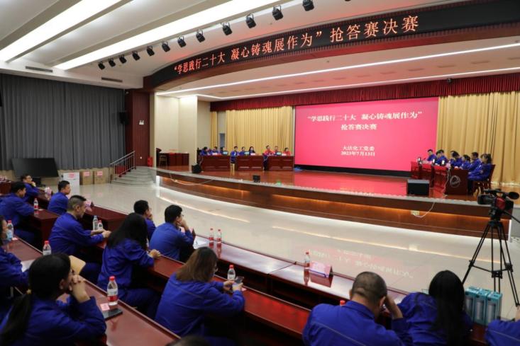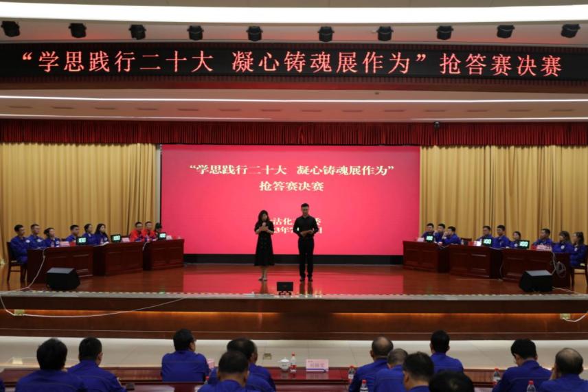 為深入推進(jìn)學(xué)習(xí)貫徹習(xí)近平新時代中國特色社會主義思想主題教育,圍繞以學(xué)鑄魂、以學(xué)增智、以學(xué)正風(fēng)、以學(xué)促干,大沽化工黨委舉辦“學(xué)思踐行二十大 凝心鑄魂展作為”搶答賽。經(jīng)過兩輪預(yù)賽的激烈比拼,決賽于7月13日在臨港報告廳舉行,最終機(jī)關(guān)代表隊摘得桂冠。